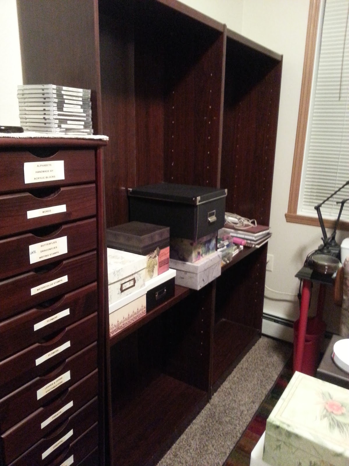 Haven't opened that one yet because we know exactly where everything goes because it's everything from the low cherry cabinet that matches the tall stamp cabinet (and they both need new labels on all those drawers).