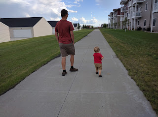 Here's Daddy and Ian on the way home to Gramma's. Blue sky this direction and very dark sky behind us.